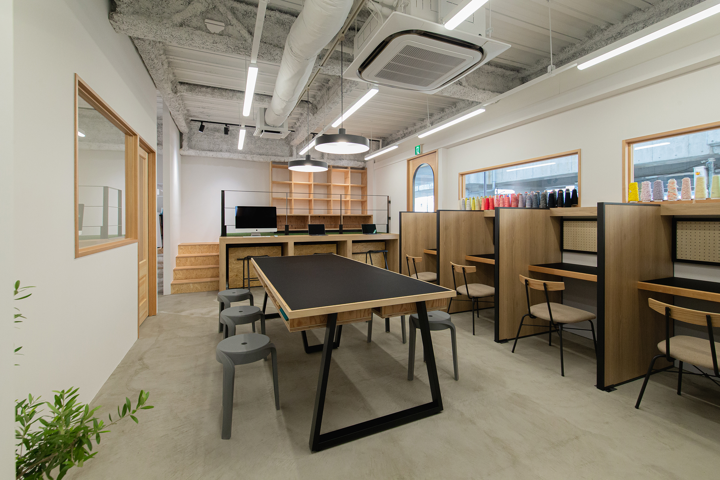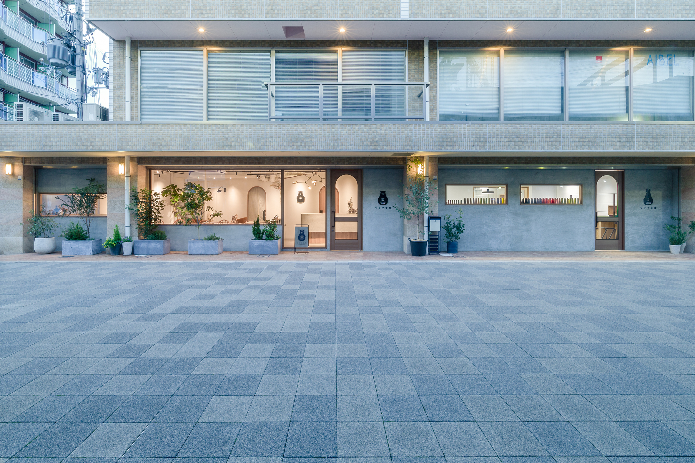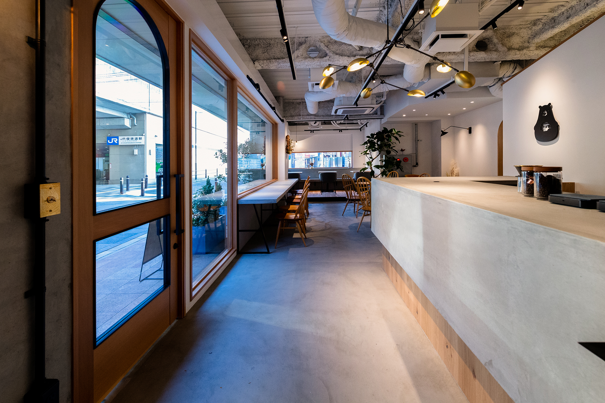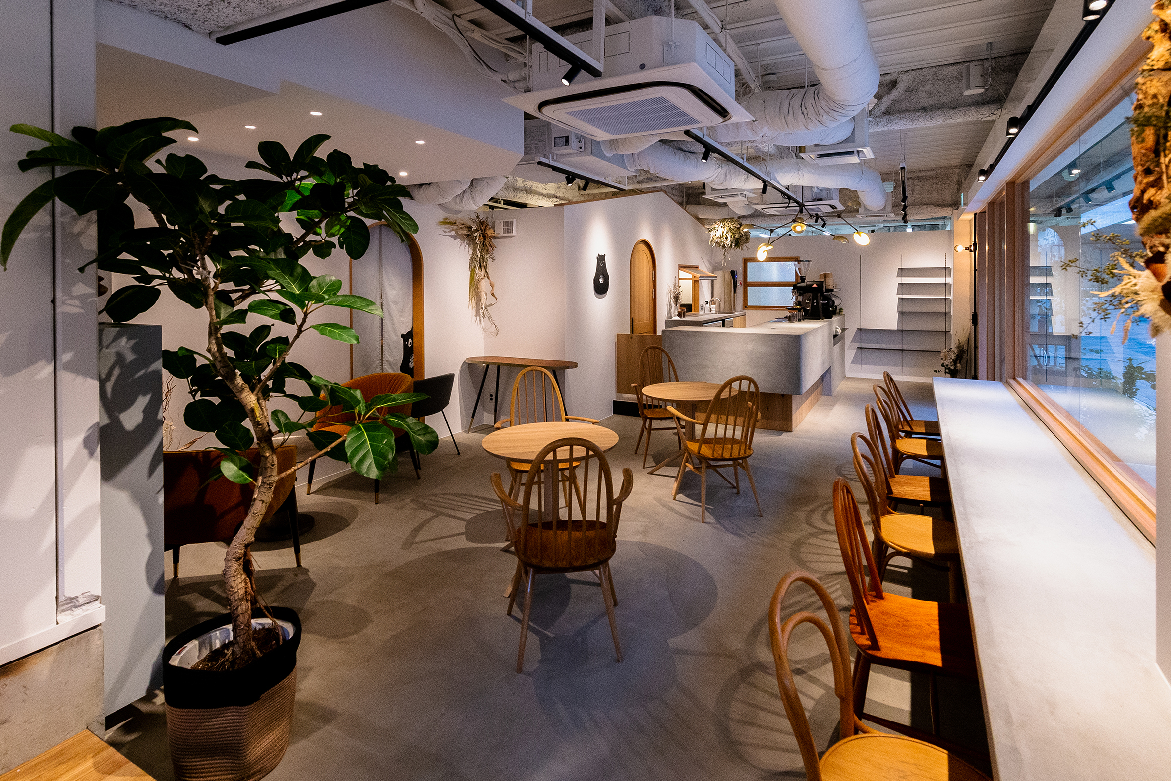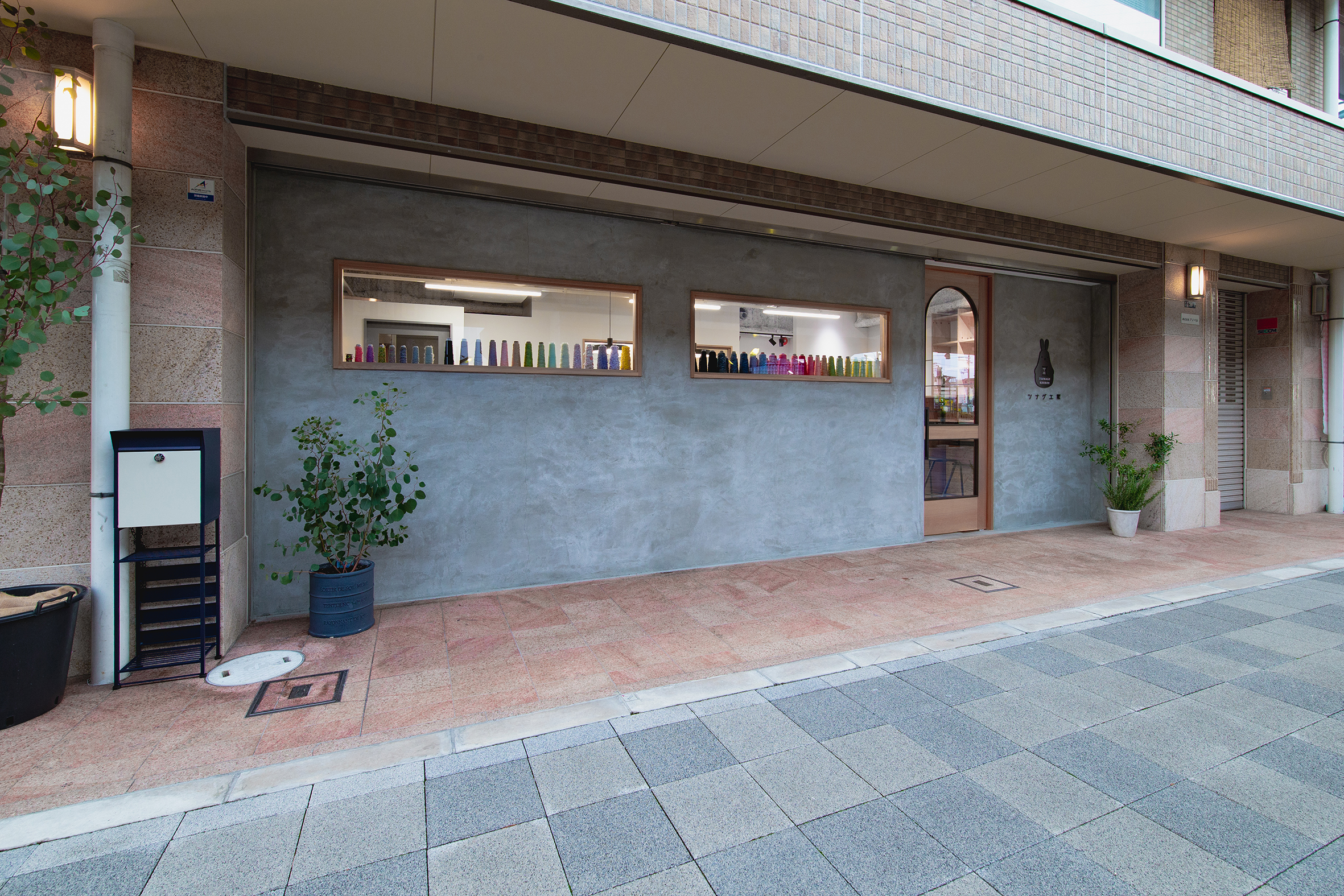 大阪・東大阪市にオープンした就労支援を事業展開する株式会社TUNAGUが運営するカフェと作業場のデザイン。様々な事情を抱えた方たちが同じ目線で集える場所として家をモチーフに、モルタルと木、鉄を使用し、スタイリッシュでありながら温かみを感じる空間を目指した。それは福祉業界のイメージを払拭するための施策でもある。黒いクマのキャラクター「サボウくん」が人気を博し、ツナグ茶房は連日多くの人で賑わっている。