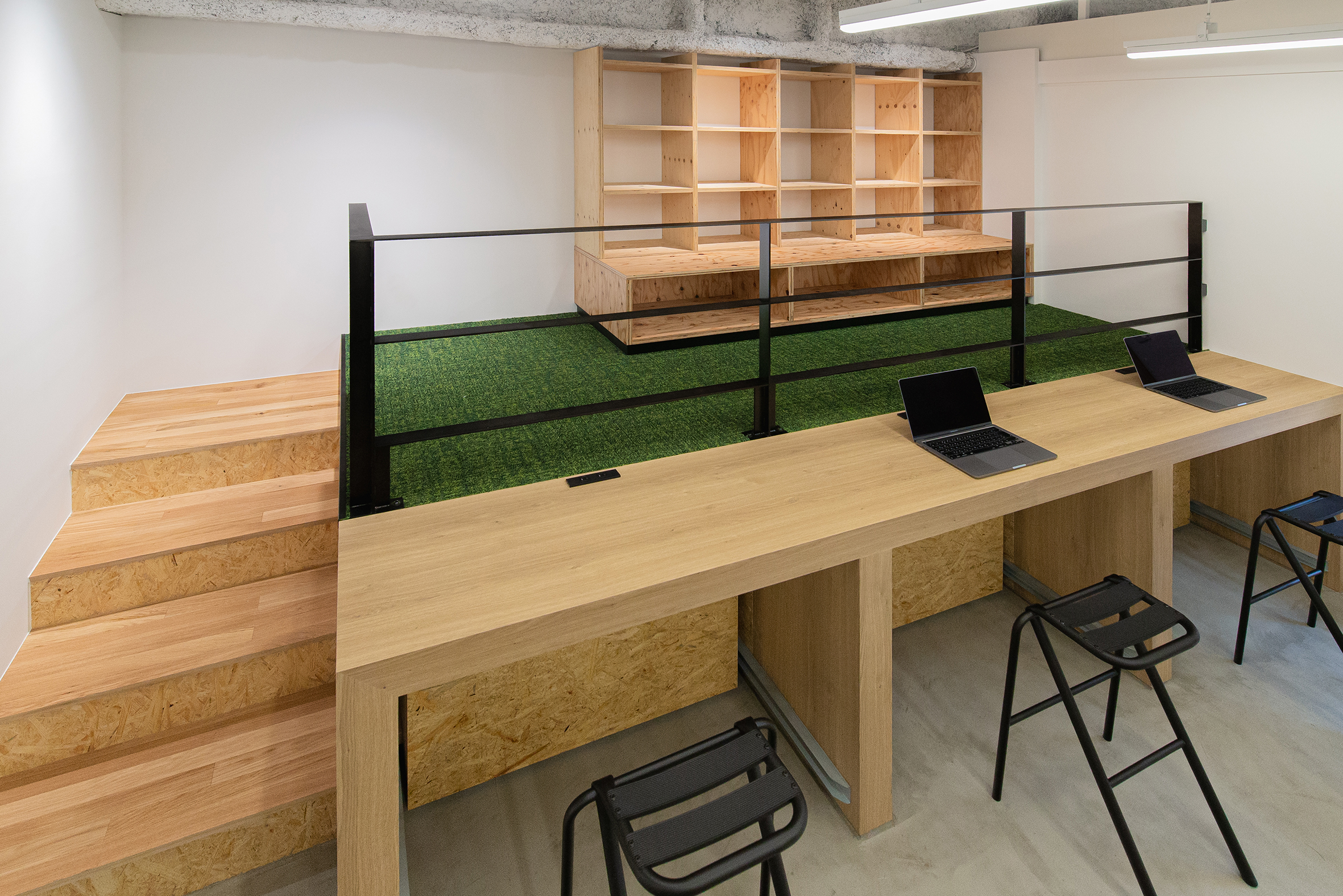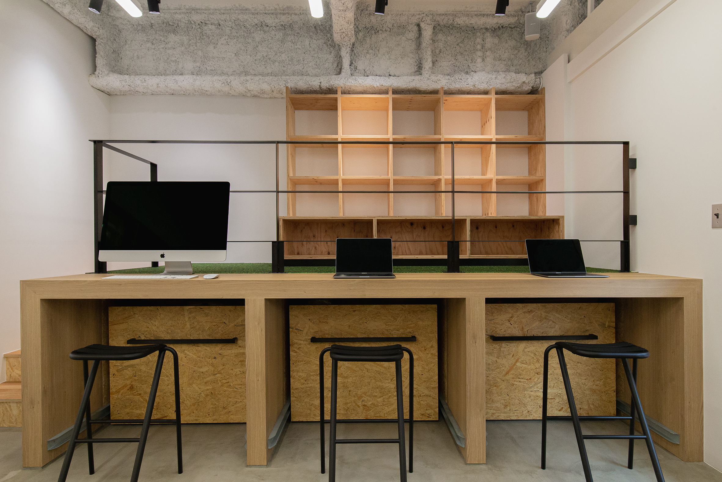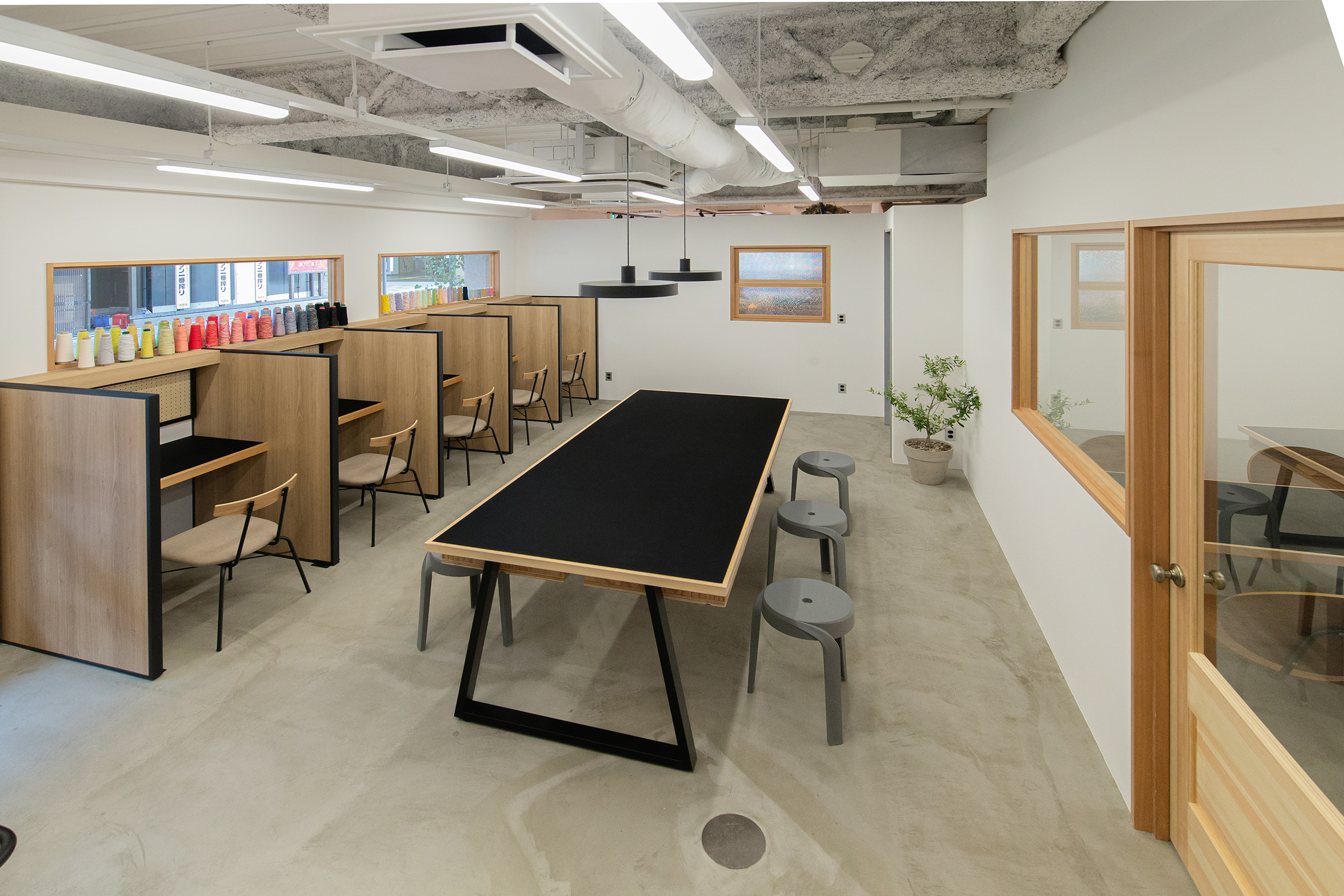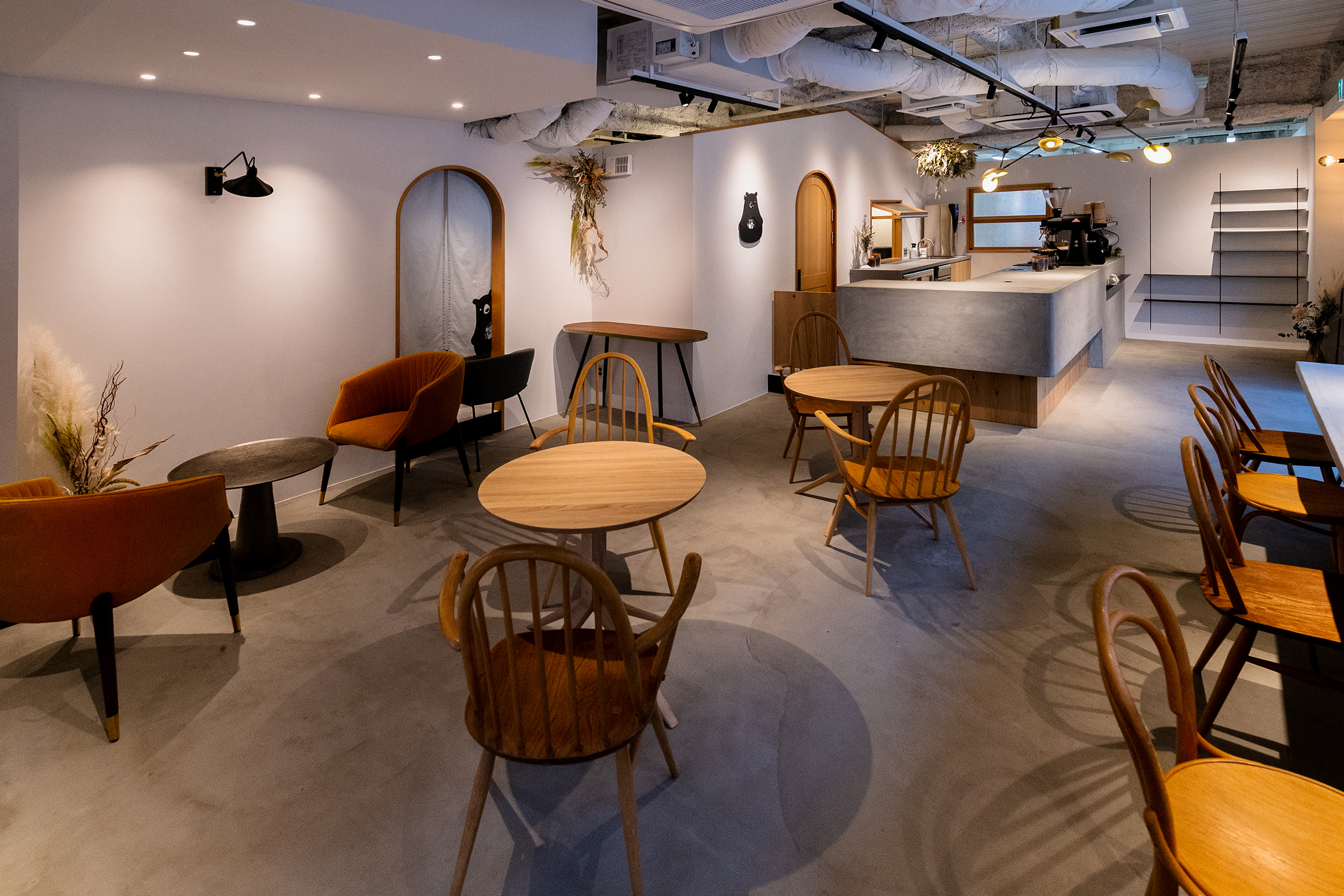 大阪・東大阪市にオープンした就労支援を事業展開する株式会社TUNAGUが運営するカフェと作業場のデザイン。様々な事情を抱えた方たちが同じ目線で集える場所として家をモチーフに、モルタルと木、鉄を使用し、スタイリッシュでありながら温かみを感じる空間を目指した。それは福祉業界のイメージを払拭するための施策でもある。黒いクマのキャラクター「サボウくん」が人気を博し、ツナグ茶房は連日多くの人で賑わっている。